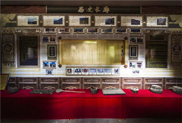 梧桐樹后是一起院落,雕花門窗,門首掛著木匾,上書“楊玉科將軍陳列室”,一對(duì)石獅子盤踞在門兩邊。進(jìn)入陳列室,迎面是楊玉科將軍坐像,楊將軍身穿官服,頂戴花翎,左手持一卷書。