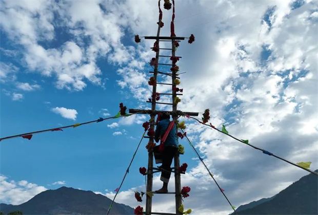 活動在傈僳民歌“擺時”展示《歌唱幸福好時光》中拉開序幕。嘉賓們參加了“吉祥神弩”啟弩儀式,見證傈僳人民歡度闊時節。活動現場,“刀桿祈福”表演將“祈福”儀式推向高潮,通過上刀桿“祈福”活動,為傈僳族同胞迎新祈福。