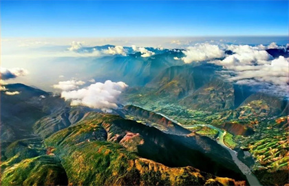 空中俯瞰怒江大峽谷,如夢如幻。這是世界上最神秘的的峽谷之一。這里有壯觀的大峽谷,激越的大江,潔白的雪山,